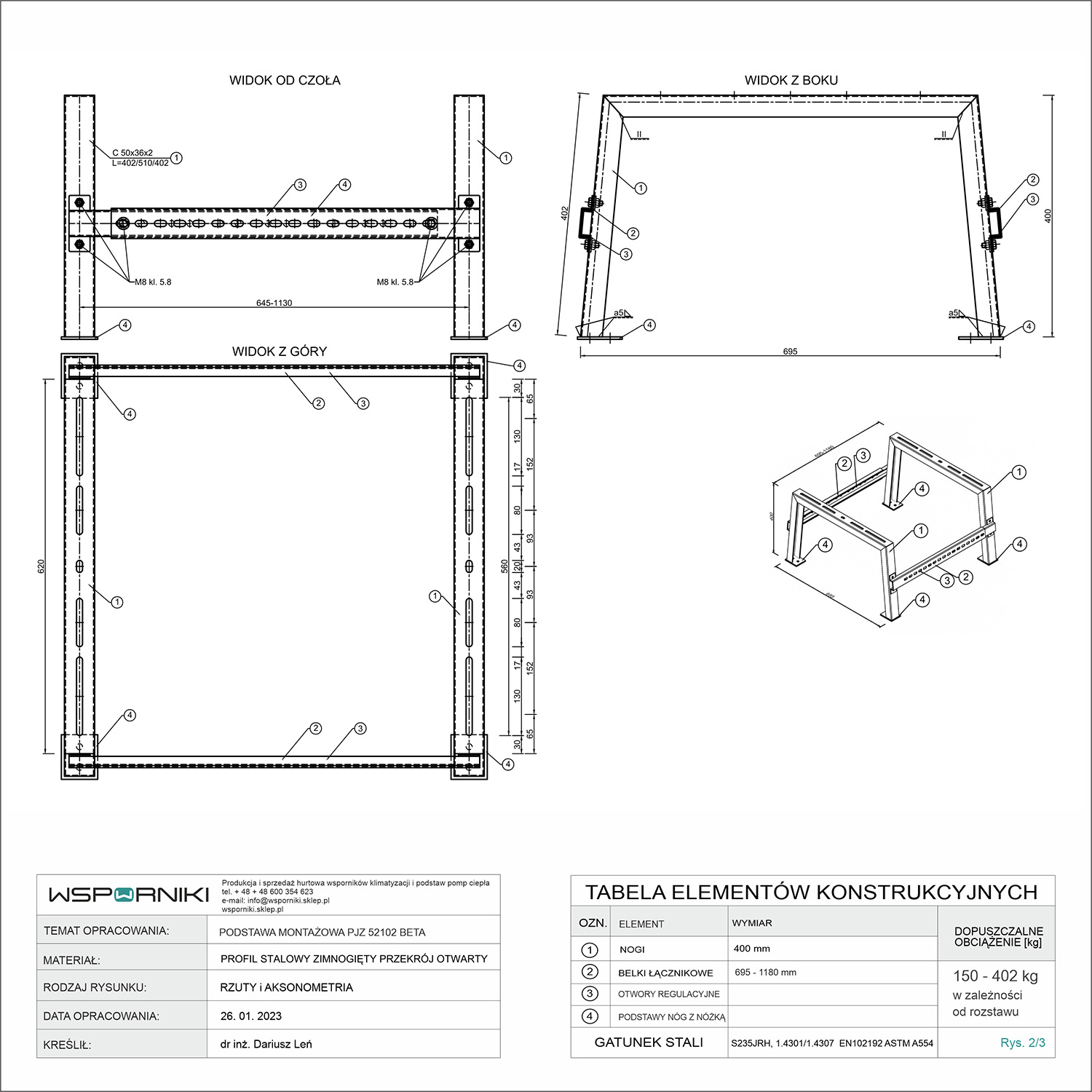 - Nazwa i symbol Podstawa stalowa do montażu jednostki zewnętrznej / malowana podkładem cynkowym i farbą – PJZ 52/102 BETA M