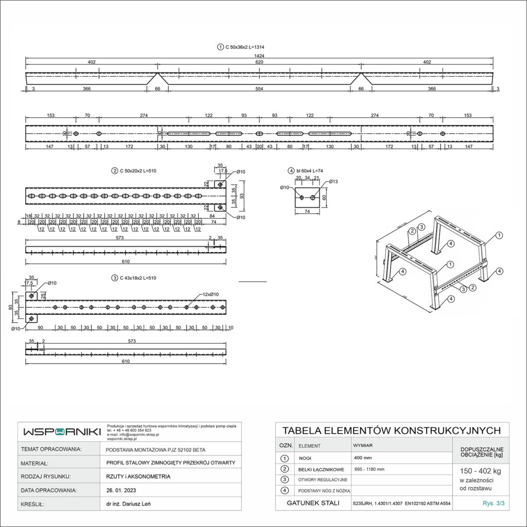 Instrukcja składania podstawy: Podstawa stalowa do montażu jednostki zewnętrznej / malowana podkładem cynkowym i farbą – PJZ 52/102 BETA M